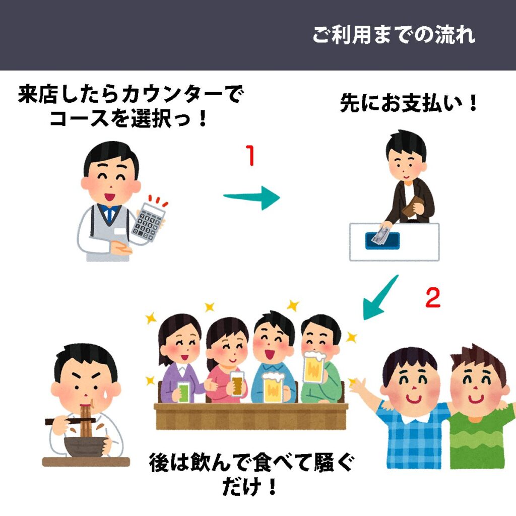 ◆ ご来店頂きましたらまずカウンターへお越しください。