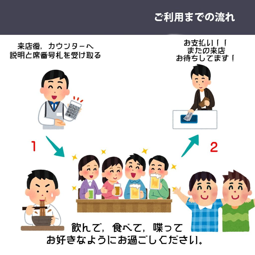 席移動の際は軽くテーブルを清掃したうえで席番号札を持ったうえでご移動ください。【通常の移動であれば問題ありません。席が空いてない場合は立ち飲みとなります。】